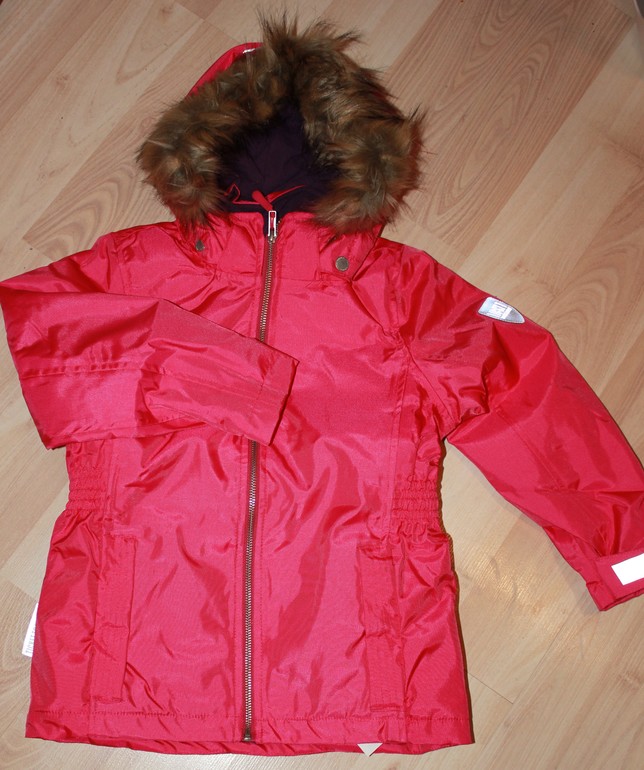 Не знаю чем она мне так понравилась, но как увидела ее так и влюбилась) Мечтала о ней не одну ночь, но на тот момент скидки закончились. Но вот она меня и дождалась. Очень она красивая и яркая. Моя блондинка в ней очень красивая) Размер 116 см, длина рукава 46 см. Нам с запасом пока. Будем носить весна-осень и теплая зима с поддевой. На холодную зиму для нас точно нет, на мой взгляд тонковата. Все мне в ней понравилось, и ткань, и цвет. Даже защита от снега есть. Буду теперь под нее штаны ловить.