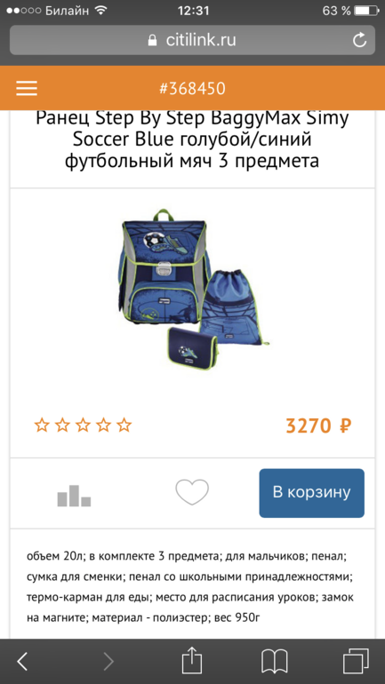 Распродажа ранцев step by step в Ситилинке