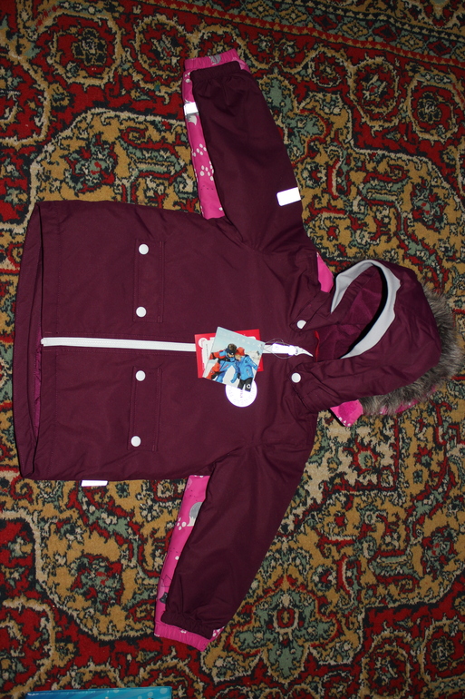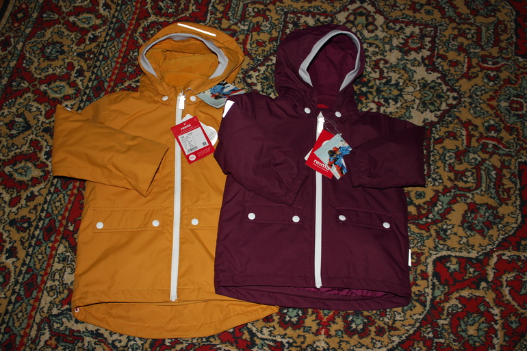 Желтая для сына 122 размер с подстежкой, можно носить и как ветровку и для дочки винного цвета размер 98. По поводу винной пока думаю, оставить или нет. Цвет красивый, но с размером сомнения. По с равнению с нашей курткой Лесси 92 размера она чуть длиннее, но рукава короче. Если оставлю, подумываю вшить трикотажный манжет. И в целом хочу отметить, что куртка достаточно широкая, по-моему не для худышек.