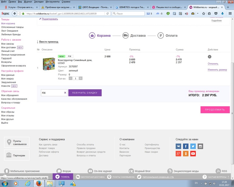 Распродажи. Скидки. Акции.Сейчас в Вайлдберрис можно купить Семейный Дом Лего Дупло Новинку 2017 года за 2297. Личная скидка 7% + сейчас на сайте действует акция 5% на все дополнительно включая Лего (промокод FIX) Успевайте, кому надо для детишек!)))