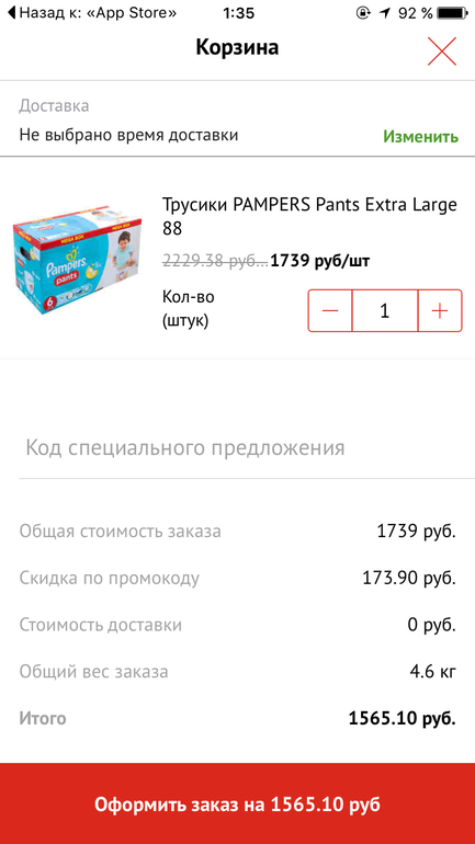 Gigant трусы по 1700 с хвостиком. А если брать через приложение то там какой то код применяется и они выходят 1565