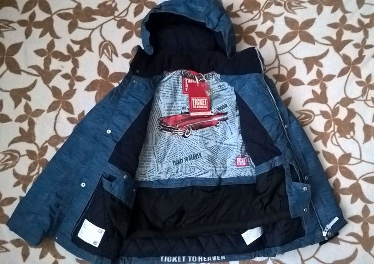 Куртка Тикет джинс р. 140, долго я за ней гонялась, 134 размер "ушел" из под носа, взяла 140 за 3354 р на Ламода.