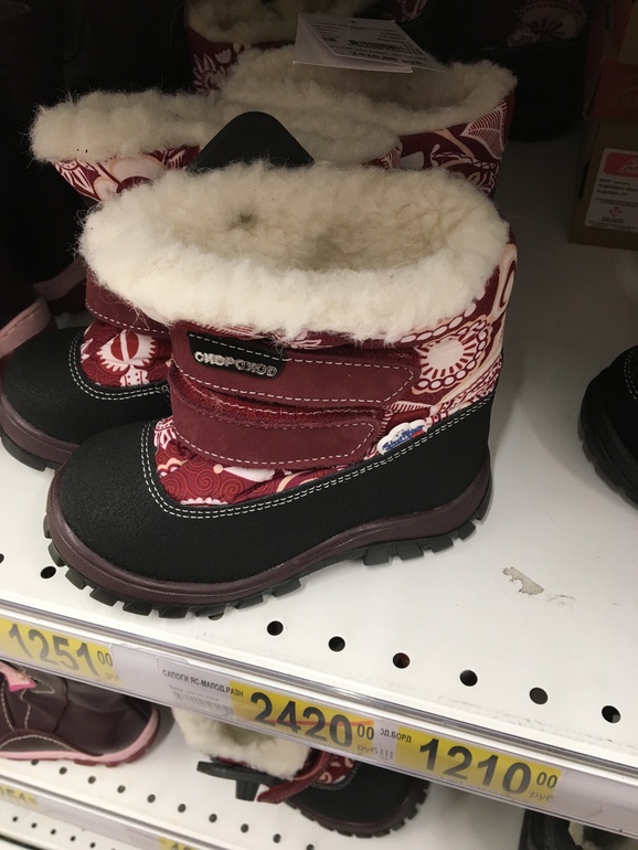 Сейчас съездила купила у нас они вообще по 985руб, расцветки разные розовые бордовые, пестрые какие-то и синие на мальчиков. Мы в этом году такие носим, ноги всегда теплые, в отличие от куомы