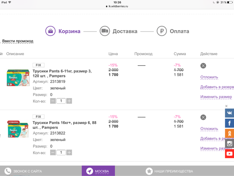 И на wb скидки/промокоды меняются частенько, и цена на один и тот же товар может быть разная) они то поднимают ее, то опять снижают