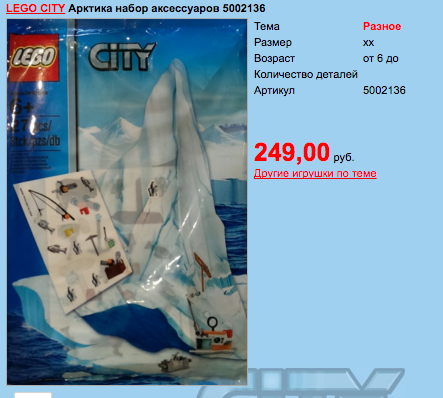 Набор аксессуаров прихватила в ЗАОДНО за 109 рублей. В набор входит набор наклеек, пакетик с детальками (27 штук) и картонный айсберг.