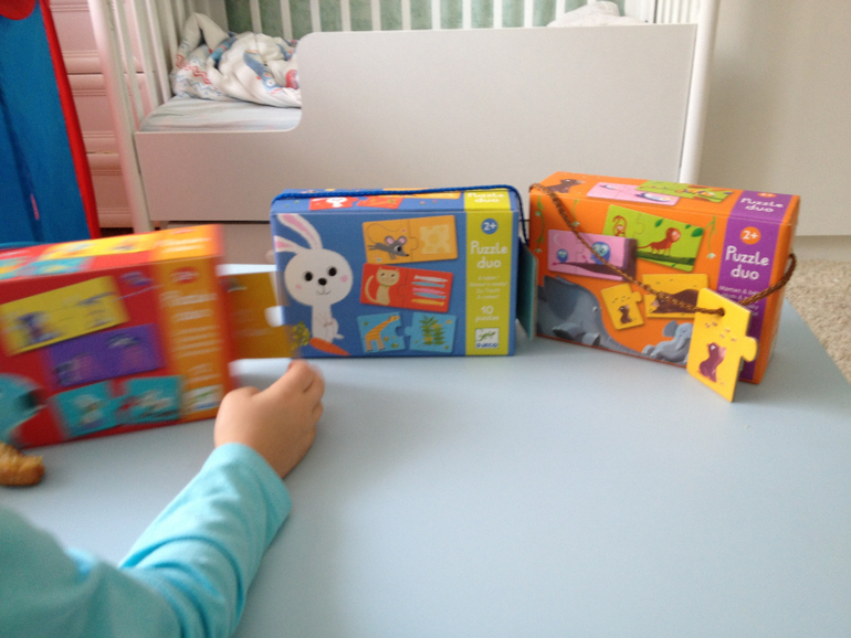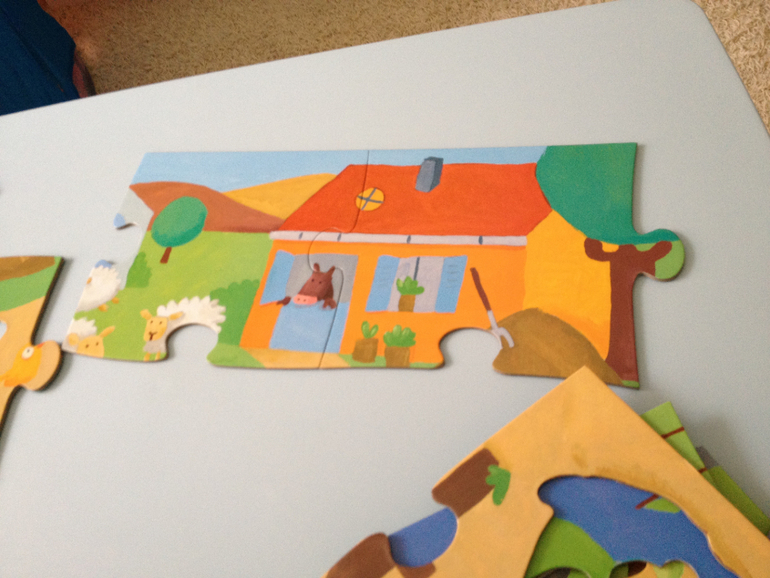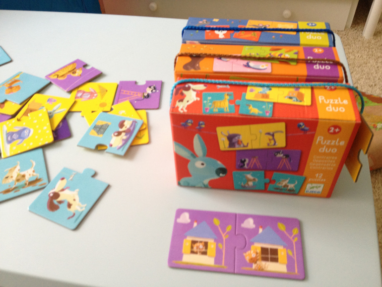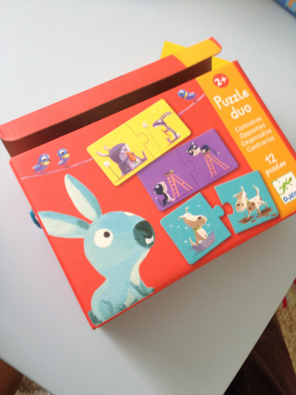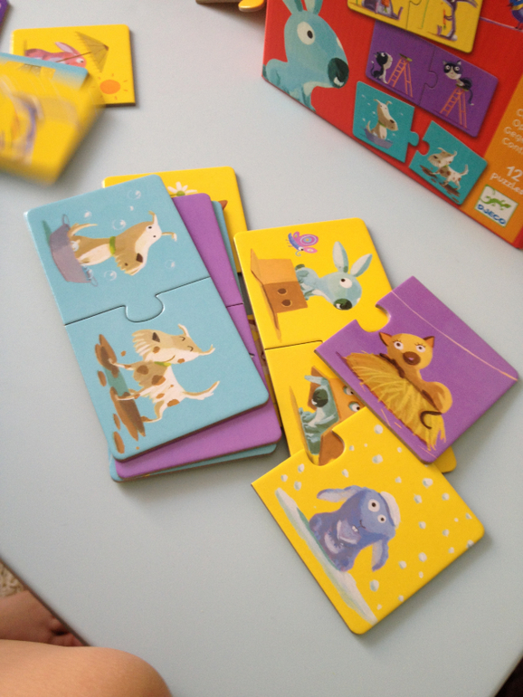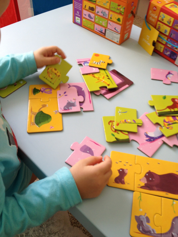 Вот и появились у нас еще две части пазлов-половинок Джеко.Все стоили по 450 руб или около того ,один бабушка принесла в декабре просто так) С едой теперь Мишке больше всего нравятся,но и остальные очень любит,чуть не расплакался,когда мы думали,что потеряли сыночка у мамы-носорога,оказалось,уронили и под стол спряталась половинка) а в Противоположностях особенно нравится как собака грязная и чистая стыкуются))))видимо,это его особенно близко-испачкаться и долго и смачно купаться в ванне потом. И еще очень сопереживает песику,который грустит,а за окном дождь.Как-то положил ему конфетку на собранный пазл,сказал от Дедушки)))видимо,Мороза.