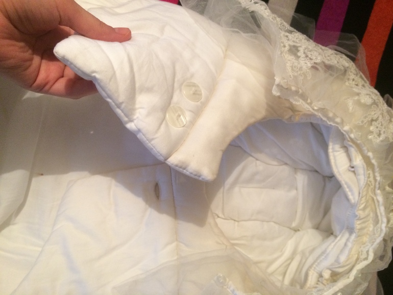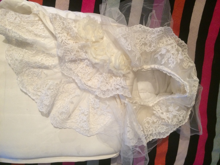 Верхнее кружево отстёгивается по бокам замочки,у меня такого удобного ещё не было конверта))