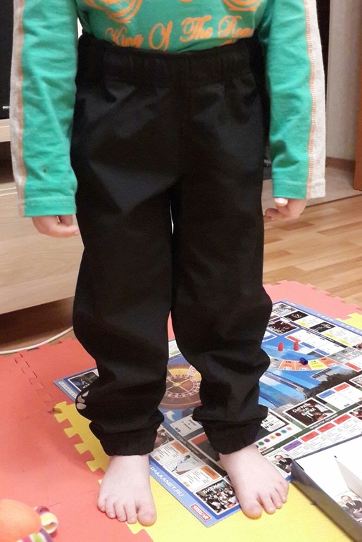 Внутри мягкий флис, воду отталкивают. На резинке есть утяжка на пуговках. Вот размер 122 на мальчике около 114 см, с запасом получились. В ДМ пишут, что они для девочек, но они универсальные.