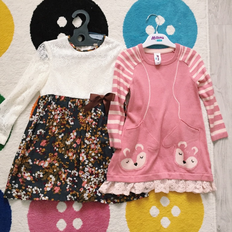 Моя дочь очень любит платья, прям кричит-мааам,паааатье))))Ходит в некоторых по дому, а что то одеваем в гости.2 платья Зара кидс и с сердечками из Коттона