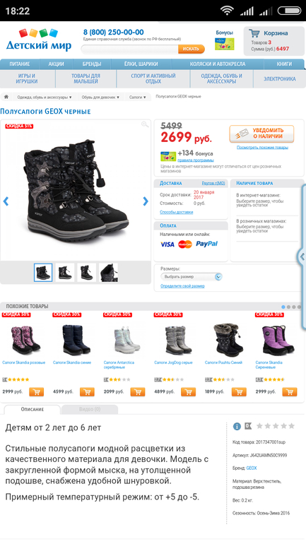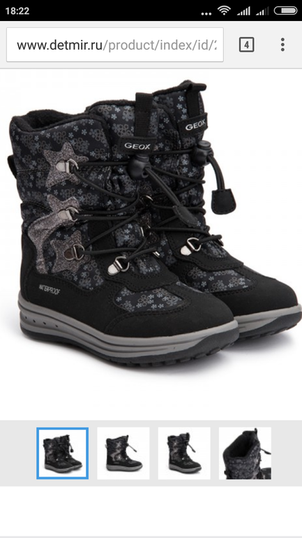Детская обувьДевочки, купила в ДМ на следующую зиму геоксы, они такие довольно толстые, как викинги по плотности. Да и одевать нам сапожки удобнее, чем ботинки на липучках. И цвет нужный. Да и цена 2200 заманила..