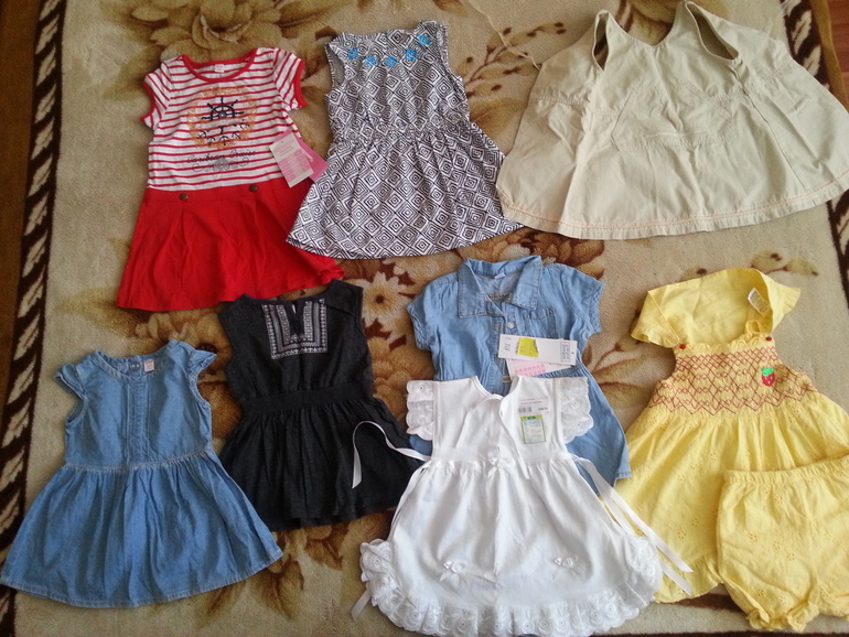 Платья на повседневку,два носили тем летом,остальное новое,для крещения это так,за компанию(так и не крестили)красное на 2-4 г,покупались по 99-300(желтое,плей тудей),сверху бежевое это фартучек для занятий))
