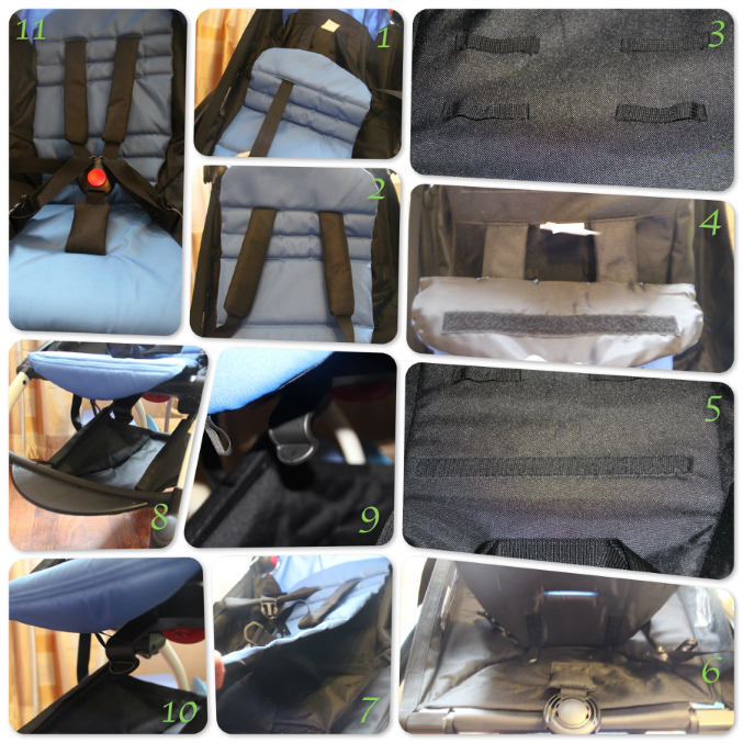 По сути мы продеваем ремки через специальные прорези, которые можно отрегулировать в зависимости от роста ребенка. Далее фиксируем сидушку с помощью липучек (расположены по периметру). И в завершении фиксируем сиденье внизу с помощью специального крючка и резинки. Быстро просто и симпатично.