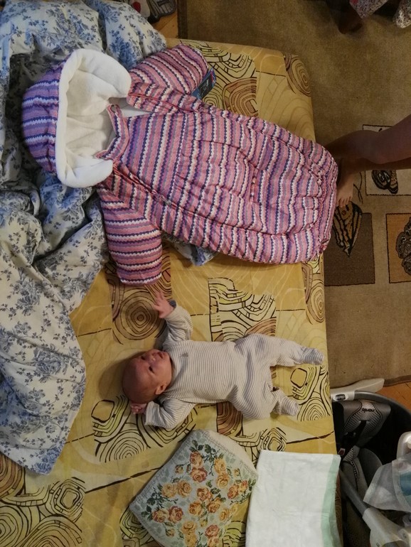 Купили дочке комбез 68 на выписку, даже до ручек/ножек не достала))) болталась в нем) пришлось в срочном порядке покупать конверт керри