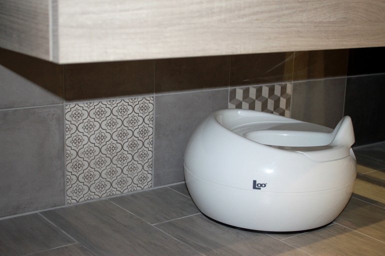 Имеющийся дочкин «трон» Babybjorn не поместился бы под навесной раковиной с ящиками, а лишнего места под горшок у нас в ванной комнате нет.