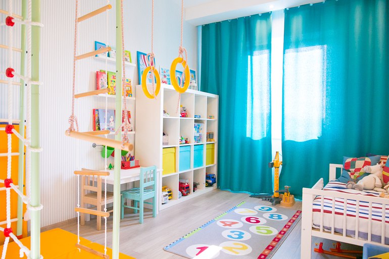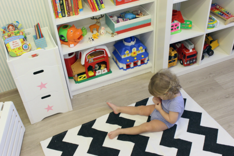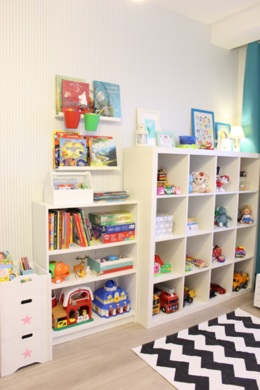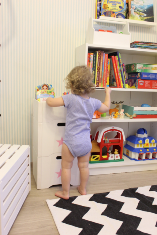 Кроме того, количество игрушек с появлением в доме второго ребенка стало расти в геометрической прогрессии. В какой-то момент мне надоело ходить по всюду раскиданным и по большей части никому не нужным игрушкам, и я просто взяла и убрала половину в кладовку. Теперь мы периодически меняем экспозицию: достаем из кладовки старые новые игрушки и прячем старые надоевшие) Однако без покупки дополнительной мебели всё же не обошлось. И теперь зона хранения у нас выглядит так: