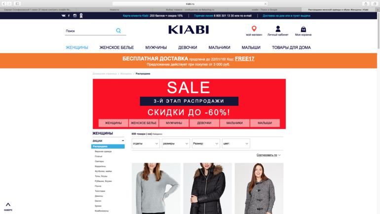 Вчера была в Киаби на Кожуховской. Было много распродажных джинсов на все возраста, брючки цветные плотные. В отделе 4-12 лет свитшоты, кардиганы приличные. Старшей купила куртку на прохладную осень 300 рублей. На малышей бодики с коротким рукавом (5 или 4шт) 300 рублей, с длинным рукавом дисней 200. А на взрослых пальто-пуховик 1500.