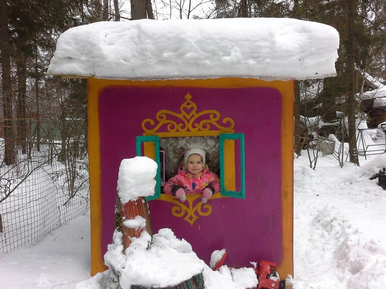 Спасибо))) Ой, у нас та же история, мой папа грозился полтора лета, но в итоге мы с сестрой надавили(у неё дочка ровесница моей) и построили!:) по факту- чем больше Домик, тем лучше! Особенно в таком возрасте)