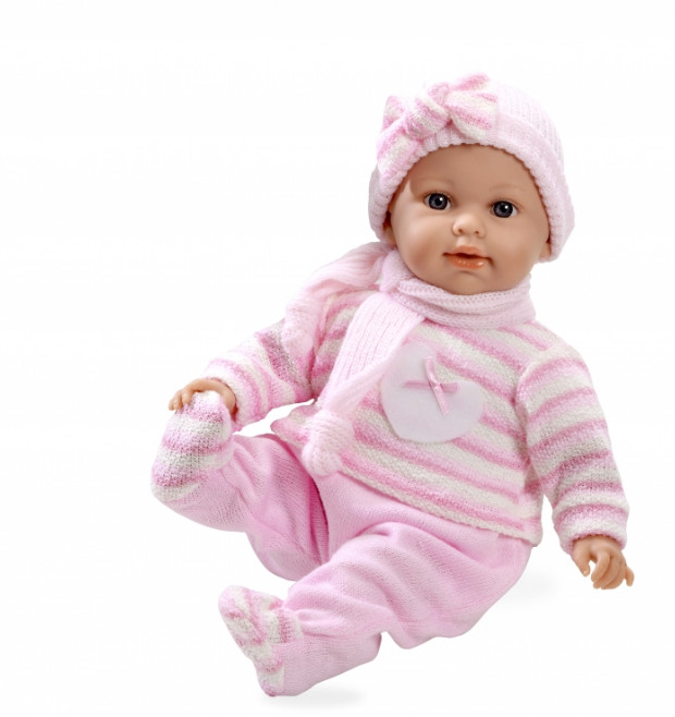 Виниловый пупс Elegance в вязаном костюмчике, шапочке, шарфике, розовый (плачет), 42 см