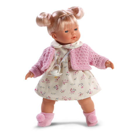 У нас есть Llorens аналогичная - не играет, достанет иногда из коробки, покрутит, повертит и бросает. Играет или с пупсами не большими или с мягконабивными куколками. Llorens хорошая, качественная, но, наверное, для деток постарше, соску дочь сама вставляет через раз, да и достаточно тяжелая кукла для 2-х летки.