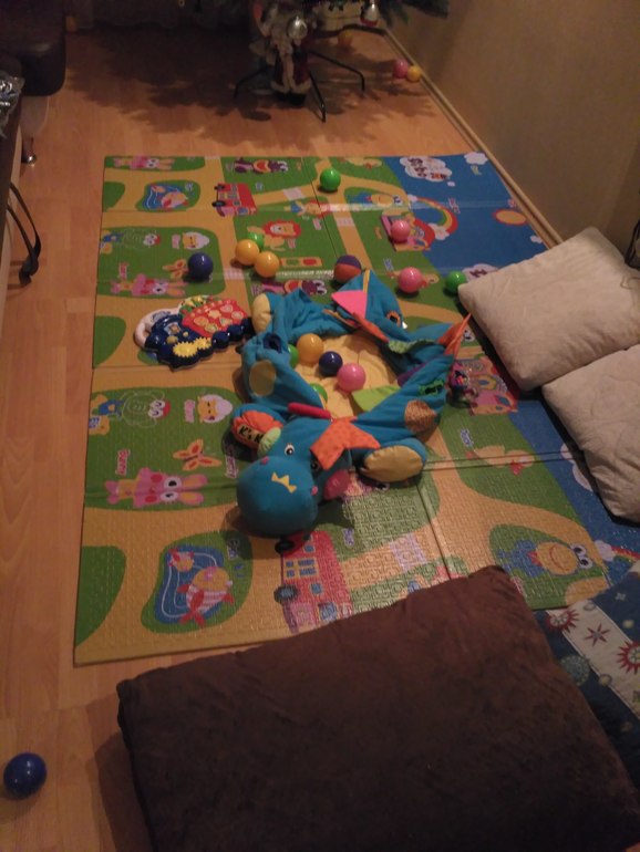 У taf toys есть огромный коврик. Я на нем помещаюсь почти) и толстый-не скомкаешь+тепло на нем. Тини лав не у дел оказался