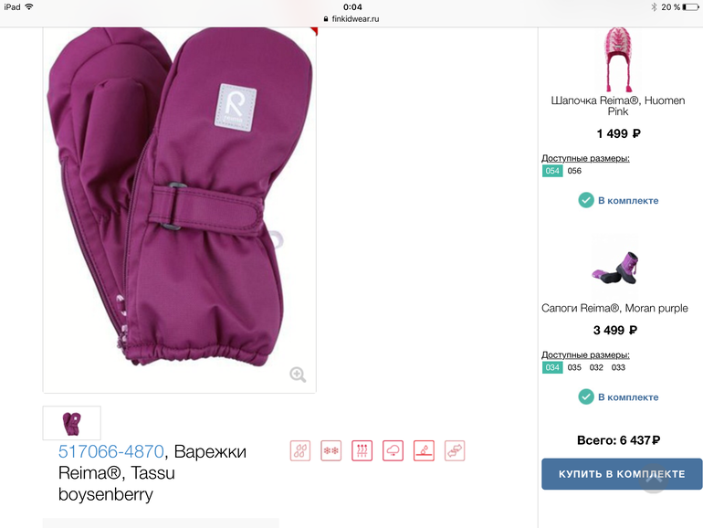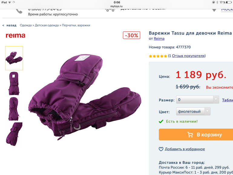 Помогите найти-купитьДоброго времени суток! Девочки, подскажите, кто в теме, где можно купить краги Рейма Тек р.1( мальчуковые расцветки) с максимальной скидкой? Больше интересуют розничные магазины, так как нужны только они, а платить за доставку 250-300р не хочется:((