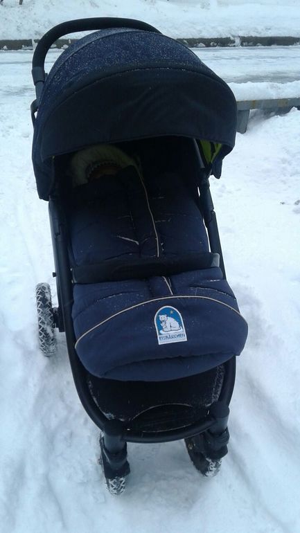Итак на данный момент мы ездим на коляске уже месяца 4. Первое,что хочу отметить я очень рада, что все же купила коляску на надувных колесах. При первом же снеге я специально полезла с ней по всем сугробам. Проходила я на ней везде. Если совсем глубокий снег просто фиксируешь передние колеса и едешь. На даче были в жуткой снежной каше. Там даже машины еле проезжали. Мы в принципе ездили без проблем. Было только пару мест где пришлось особо кашестое место приодаливать на задних больших колесах. Я знаю,что многих в этих колясках смущает стук колеса переднего. Прежде всего отмечу да,этот стук правда есть. Я долго пыталась разобраться от чего он появляется. Чисто внешне просто одно колесо (переднее правое)вдруг сходит с ума и крутится невпопад. Я твердо решила купить прокладку (как советовала одна девочка в комментариях к моему первому посту),но пока дошла в магазин за ней колесо перестало стучать,ну или я перестала это замечать;)
