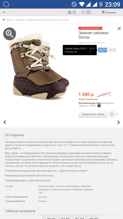 Специально сейчас померила 26-27 это 17 см. Очень теплые они) и удобные тоже) Мы 3 зиму таскаем их - 2 года племянники и сейчас дочка в них ходит , ни разу ноги не замерзли) на следующую зиму уже купила DEMARы
