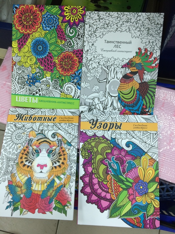 А в детских книжках еще такие альбомчики в мягких обложках с раскрасками-антистресс лежат