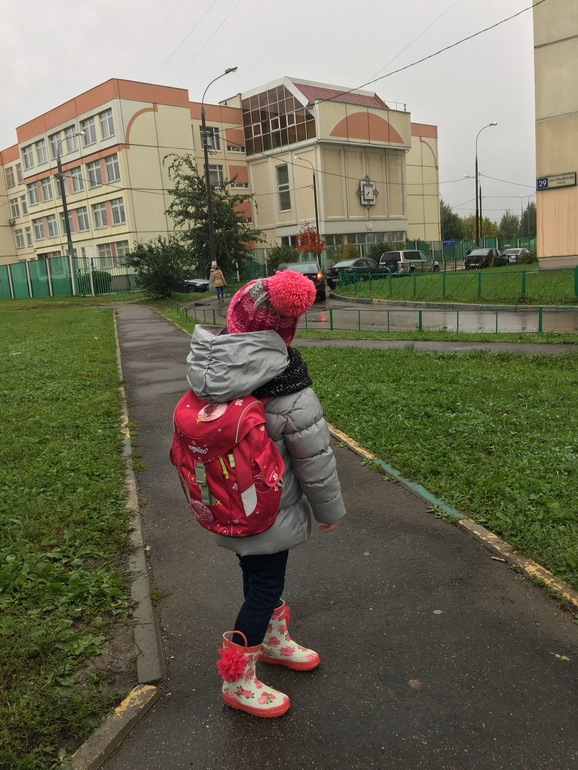 У нас небольшой легкий рюкзак, типо как для сменки. Но у нас тетради большие, А4, плюс одежда для переодевания там же и перекус небольшой. Мы ходим далеко от дома)