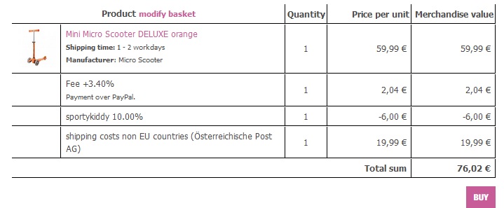Добрый день. Не подскажете цену https://www.kiddy-bikes.at/Mini-Micro-Scooter-3in1-DELUXE-blau_1.