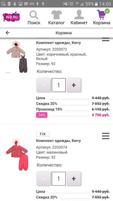 Если зарегистрированы, на сайте или в приложении выберите фирму керри, можете артикул с фото ввести. На некоторые позиции сейчас скидка 20%, промокод на главной странице на зиму16-17, плюс акция 4% к личной скидке и 5% на наш пункт с/вывоза сейчас поставили. Можно здесь девочек с максимальной скидкой попросить заказать.
