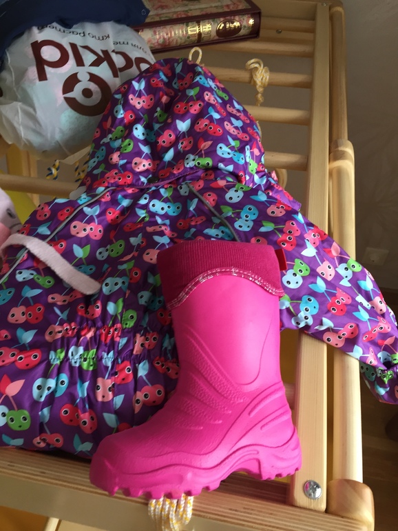 Мне оооочень он понравился! Мягкий, лёгкий, очень приятный на ощупь. Конечно, посмотрим, как он будет в деле, но пока я очень довольна. Размер 86, у дочки рост 80 см, имеется животик и попа, но все нормально застегнулось и нигде не давит. Носить будем с этими ботинками экко или лемиго на слякоть.