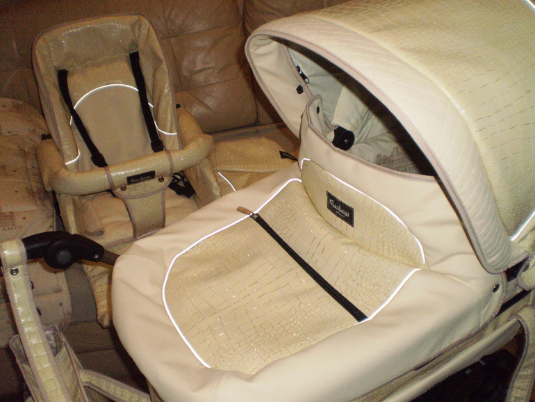 доукомплектовала коляску муфтой для маминых ручек и необходимой сумкой. аксессуары - это важная вещь в коляске, если они продуманны и удобны. в коляске из экокожи невозможно обойтись без матрасика из хлопка. он и защитит коляску, а самое главное - попку и спинку от соприкосновений с коляской.