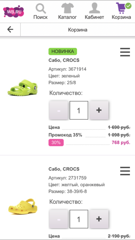Я тоже хотела эти зелененькие сандалии крокс) Но пока решала с размером, решила хотя бы несколько позиций оформить, а потом раз - и скидка исчезла((