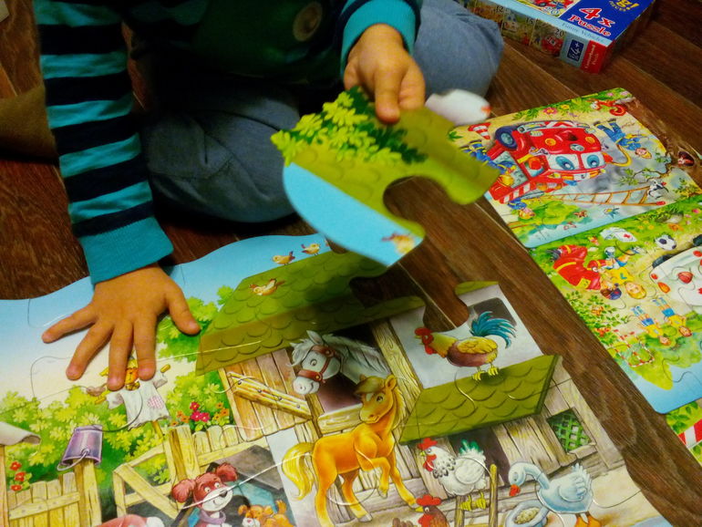 ИгрушкиОткрыли мы новую коробку макси 20, восторг! Правда сбор картинки вновь занял минут 15 от силы, я то наивно полагала, что раз возраст указан 4+, моему в неполных три года придется поднапрячься. Судя по комментариям других мам рекомендуемый возраст на коробке действительно завышен. Ну да ладно, радость ребенка все перекрывает, достает и играет по несколько раз на дню. Кому интересны фото, прошу под кат