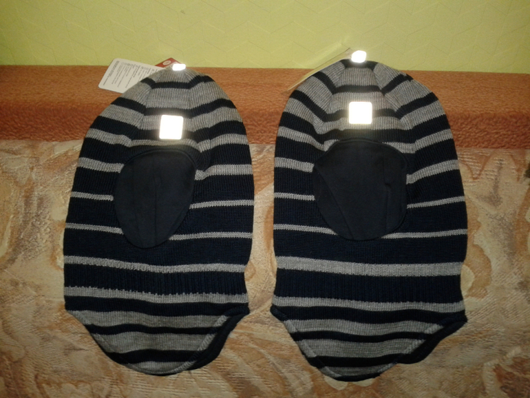 А это для младшего, размеры 48-50. В этом году пойдем в сад, поэтому шлемиков подкупила (хотя есть еще в запасе от старшего))), ну и просто шапочек. Полосатый шлемик купила двух размеров: 48 и 50, не знаю какой подойдет. Цена в Мазе была смешная 600 с чем-то, около 700 руб.), а осенью разберемся... Этот шлем очень теплый, на морозы: шерсть + утеплитель, на х/б подкладке. 1000 руб. - Дет. мир.
