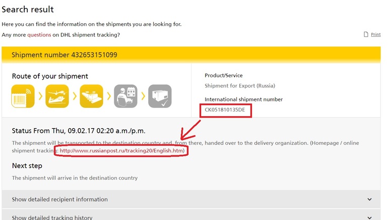 Когда заходите по ссылке (в полной версии, а не в мобильной!), то после отправки появилась надпись, что теперь отследить посылку можно на сайте Почты России, при этом вводить нужно тот трек, который выделен справа: