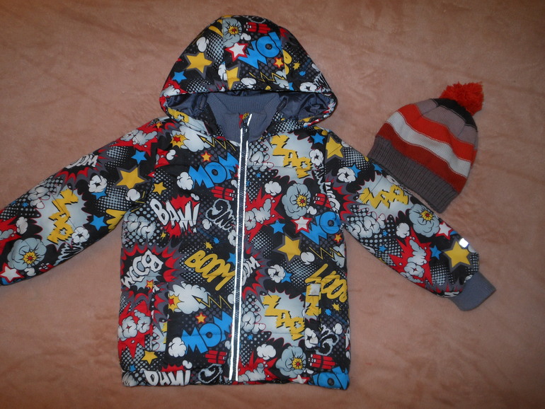 А эта куртка "пусть будет" из Фан Дей за 1300 рублей. Подозрительно напоминает осеннюю из Мазы. Даже не знаю, будет ли как раз нам на следующую зиму. Ну да ладно- велико- не мало