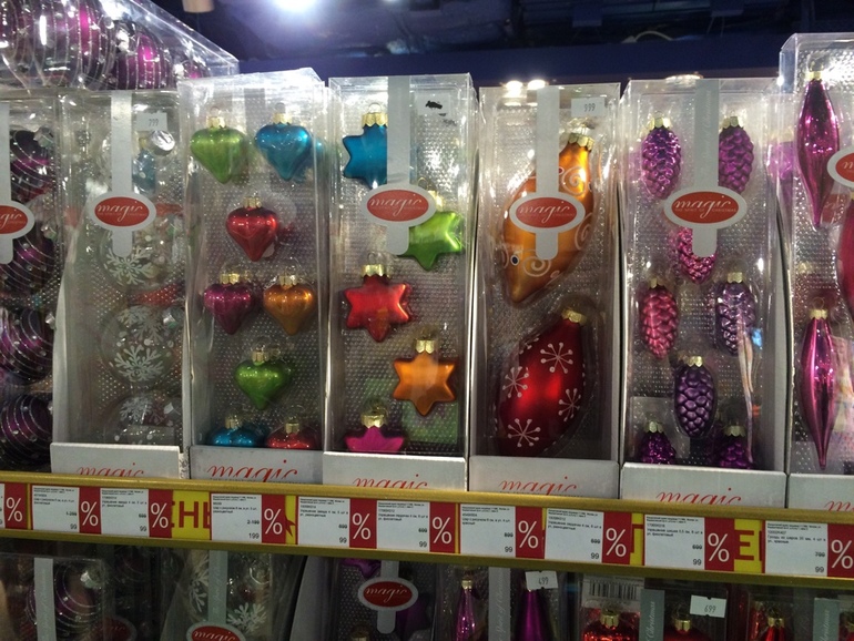 Мы вчера в ОКЕЕ каких-то серебристых и золотистых бус с ребенком набрали по 90 копеек за упаковку, сейчас самое время покупать новогоднее, цены ниже некуда