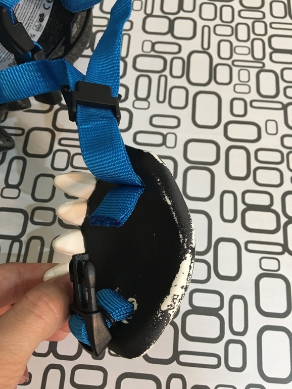Т.е. Появилась эта трещина и ужасно протерлась зашита подбородка. Интересно что же с ним будет если ребёнок ударится головой об асфальт, он вообще разлетится??? Качество меня не устроило.