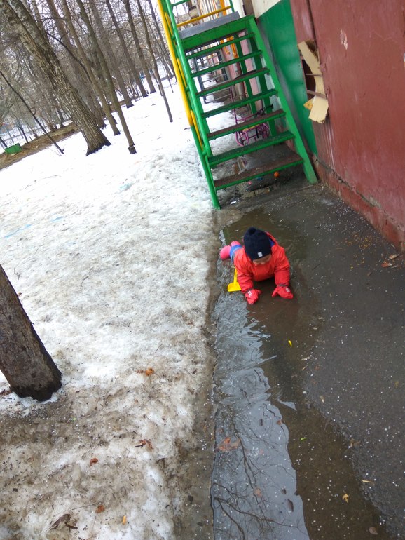 Вот когда ребенок так лежит в луже и ему тепло и сухо..То мне так хорошо...Ааа))) я прям обожаю наш костюм и краги.