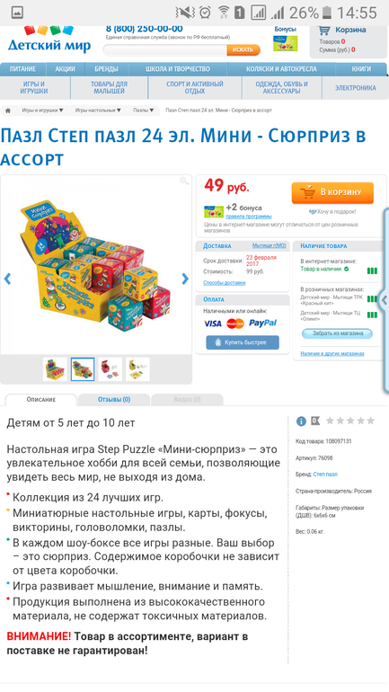 Коробочка с сюрпризом. В каждой разная мини игра.