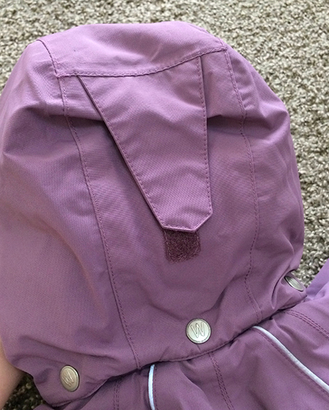 Глубина капюшона (чтобы не сваливался на лицо) регулируется сзади липучкой.