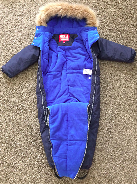 Для Маши купила два комбинезона: один полегче - фиолетовый Wheat, второй очень тёплый - темно-синий Ticket to Heaven из серии Snowbaggie с двумя молниями.