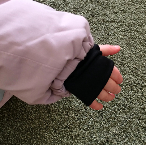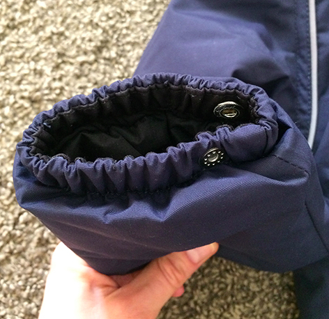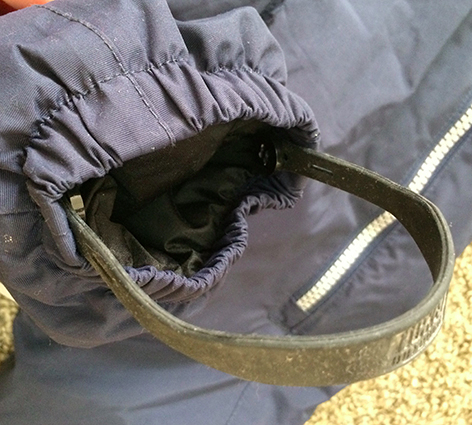 Очень здорово сделан рукав. К краю пришит капроновый рукавчик, который надеваемся на большой палец. Ни ветер, ни снег не попадёт точно. Если не сильно холодно, то можно и вовсе не надевать варежки.