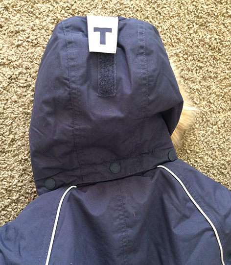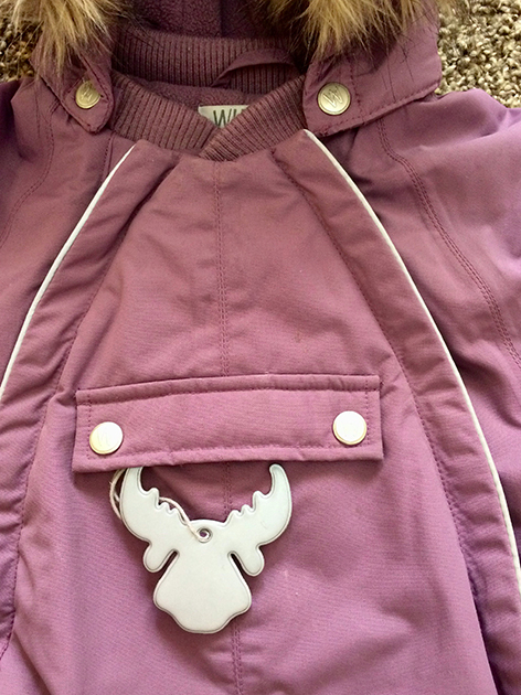 На груди есть кармашек, из которого свисает такой милый светоотражатель.