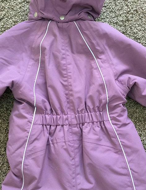По качеству она такая же классная как и комбинезон. Но по размеру немного больше. Комбинезон 98 размера на Маше ростом 98 см сейчас сидит немного лучше, чем эта куртка. Также, в отличие от комбинезона, который с поддевой можно носить в сильные морозы, эта куртка больше подойдёт для холодной осени или тёплой зимы. В минус 10-15 в ней будет прохладно.