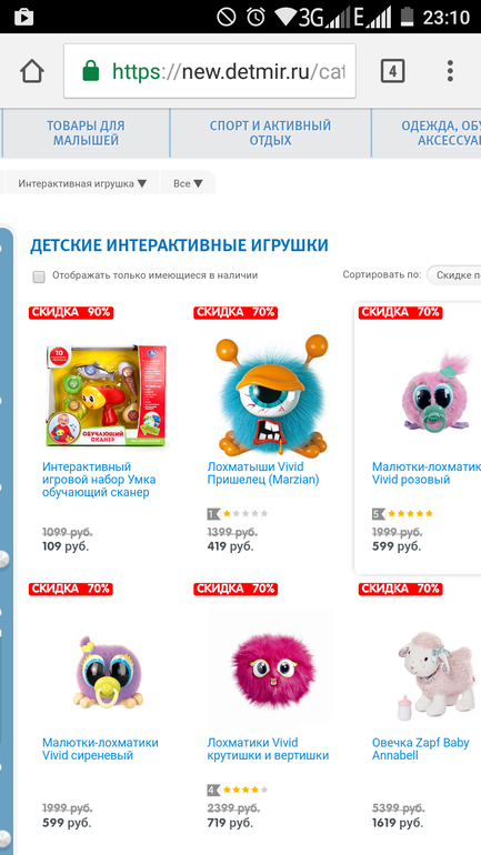 А у меня по ссылке таких нет как у вас на картинке, только от 60℅ скидки. И ферби всякие
