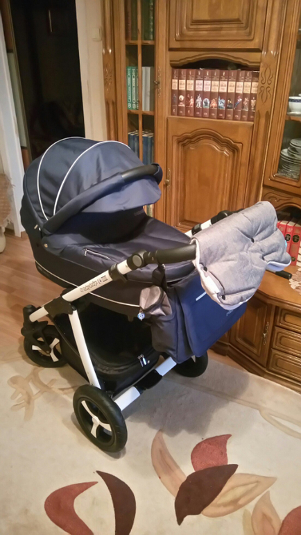 Чисто на первый взгляд мне очень нравится внешний вид. Он стильный, но выдержанный и практичный. Стандартный синий цвет очень приятного оттенка, немаркая расцветка и легкомоющаяся ткань. А вот ослепительно белые элементы - то, что нужно, чтобы добавить коляске изюминку и привлекательность - эти части можно будет легко зачистить порошком и они будут белыми всегда.