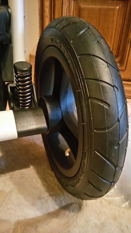 Рама тяжеловата, то с другой стороны - зачем мне её носить?! Не совру, если скажу, что складывается и раскладывается за 2 секунды. Колёса снимаются, что для нас было очень важно - коляска будет храниться в квартире и после каждой прогулки колёса можно запросто ополоснуть от песка. Колёса надувные и к ним идёт в комплекте насос,что порадовало мужа:) Отдельное внимание тормозу и амортизации. Тормоз широкий и удобный, а амортизация пружинная. После прогулки смело заявляю - мы проехали по всем перекопаным дорогам, ямам и разбитому асфальту (черт меня дёрнул гулять по дворам)и малыш не проснулся даже!